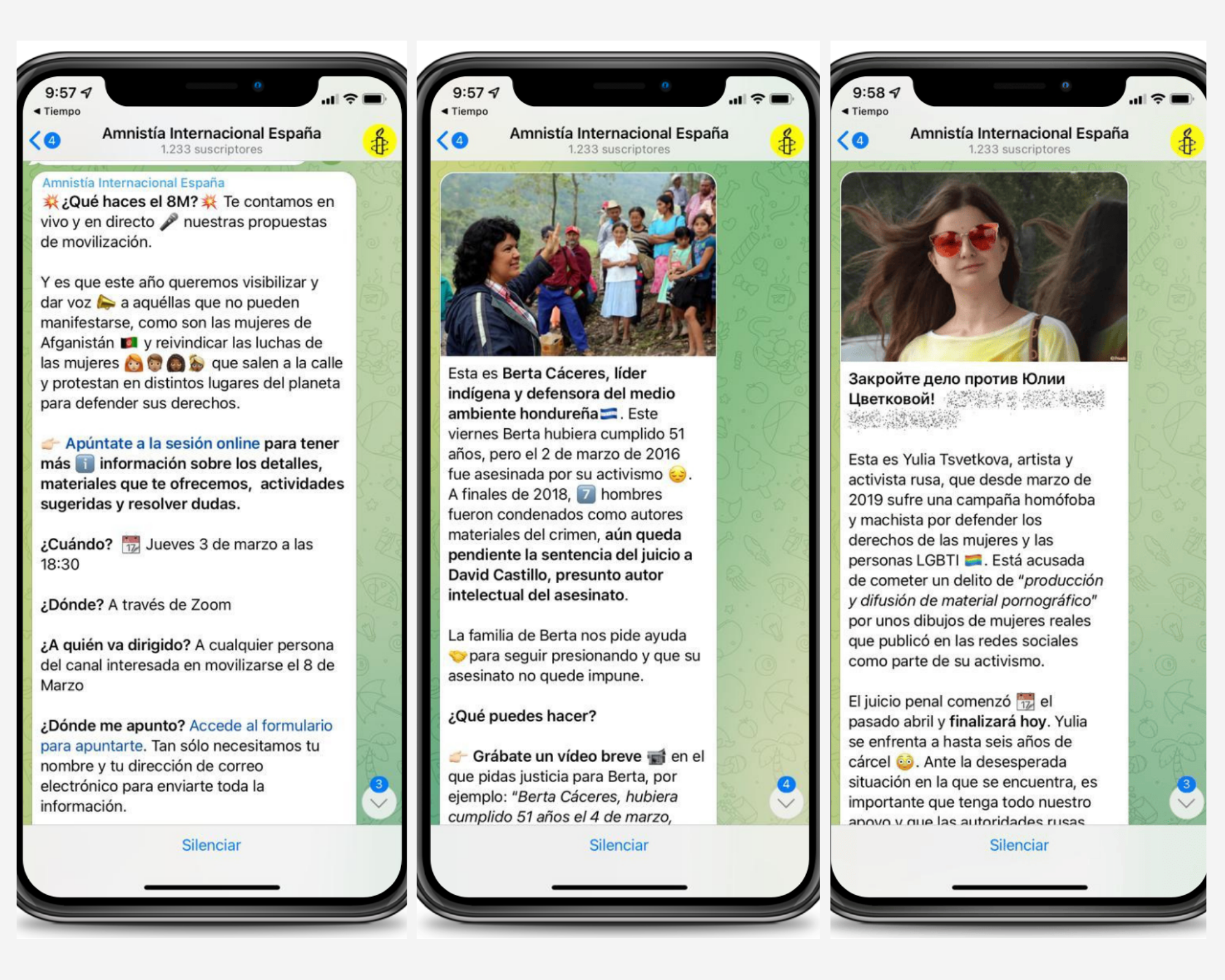 Súmate y forma parte del canal de Amnistía Internacional España en Telegram. Ahí podrás informarte sobre las campañas de movilización digital que ponemos en marcha y ayudarnos a que alcancen a la sociedad y tengan verdadero impacto en derechos humanos.