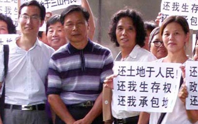 Su Changlan hace campaña con otros activistas chinos por los derechos sobre las tierras de los campesinos del pueblo de Sanshan. © Private