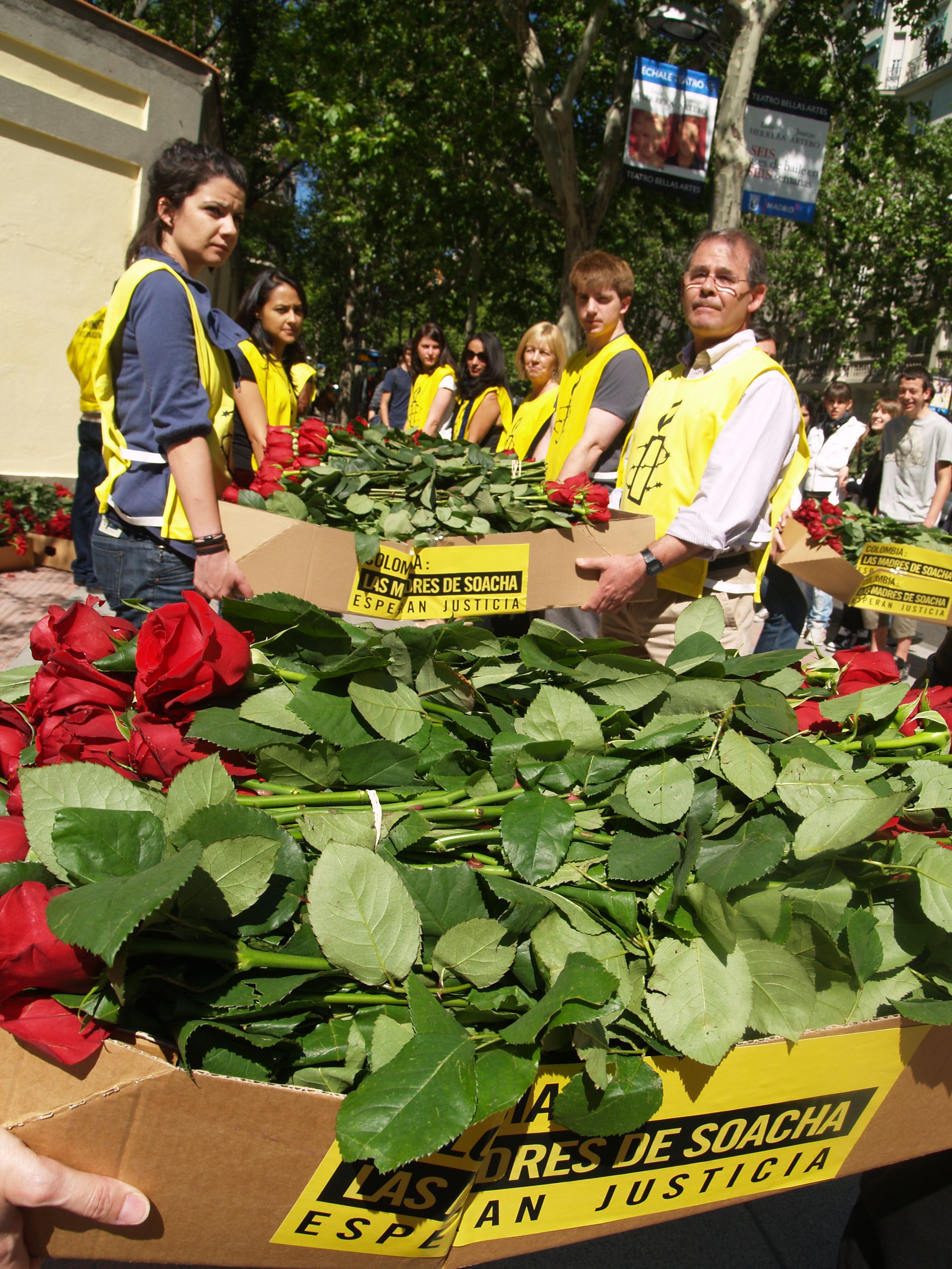 AI ha inundado la embajada de Colombia de rosas coincidiendo con la VI Cumbre Unión Europea – América Latina y Caribe (UE-ALC), que se celebra en Madrid durante hoy y mañana. Con motivo de esta cumbre, la organización ha entregado también un ramo de rosas y una carta a José Luis Rodríguez Zapatero para reclamar a la Presidencia española de la UE que, conforme a sus propias Directrices sobre Defensores de los Derechos Humanos, exprese su preocupación por la persecución que sufren las Madres de Soacha y exija a las autoridades colombianas medidas para garantizar su seguridad.