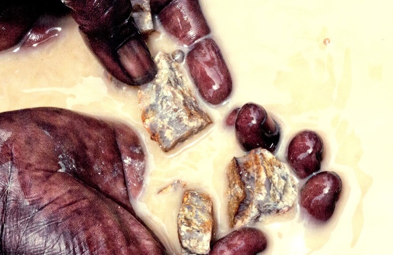 Un minero lava las pepitas en una mina de oro al este de Senegal. © Laelia Adjovi