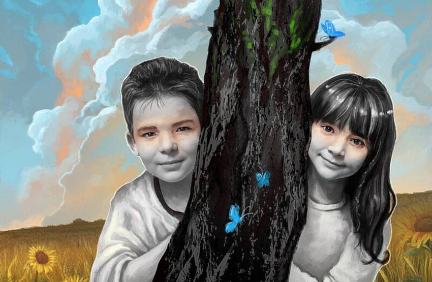 Maksym tenía sólo 10 años cuando le mató el misil ruso que destruyó su casa. Su hermana, Anastasia, tenía ocho. Este dibujo pertenece a un calendario conmemorativo elaborado por Amnistía Internacional Ucrania. La artista es Beata Kurkul. © Beata Kurkul/Amnesty International Ukraine