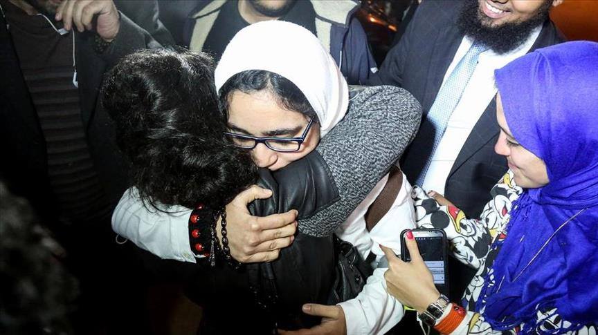 ¡Libertad y tratamiento para Israa! Más de treinta y cuatro mil personasapoyaron la campaña de Amnistía Internacional España. En la imagen Duaa abraza a su hermana Israa a la salida de la cárcel. Fuente Facebook