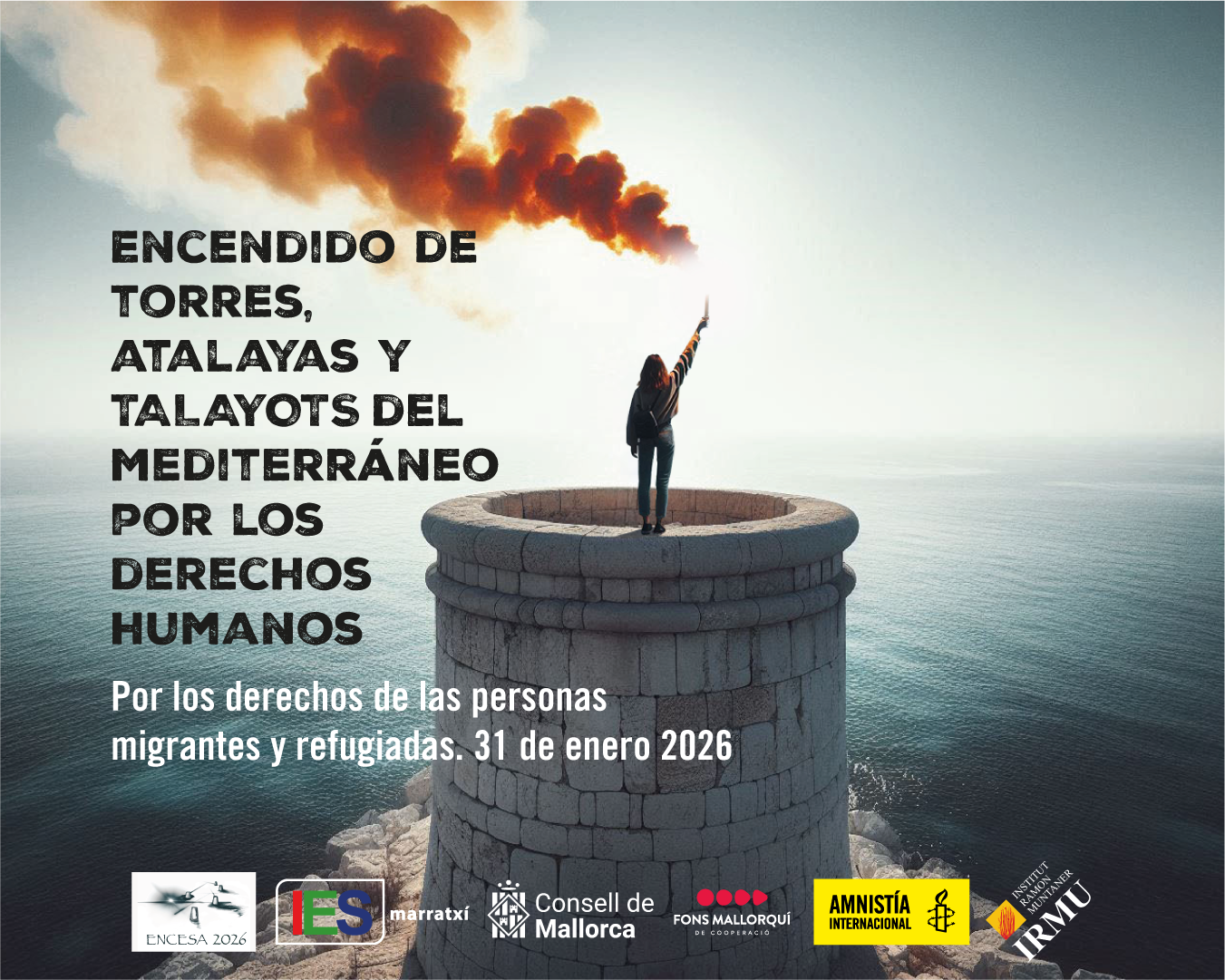 Un año más, torres, atalayas, talaiots y fortificaciones se convierten en faros de acogida con la campaña #DerechosOnFire que trata de dar un mensaje esperanzador para aquellas personas que ponen en riesgo sus vidas huyendo de la desesperación, la violencia, la persecución y la injusticia.